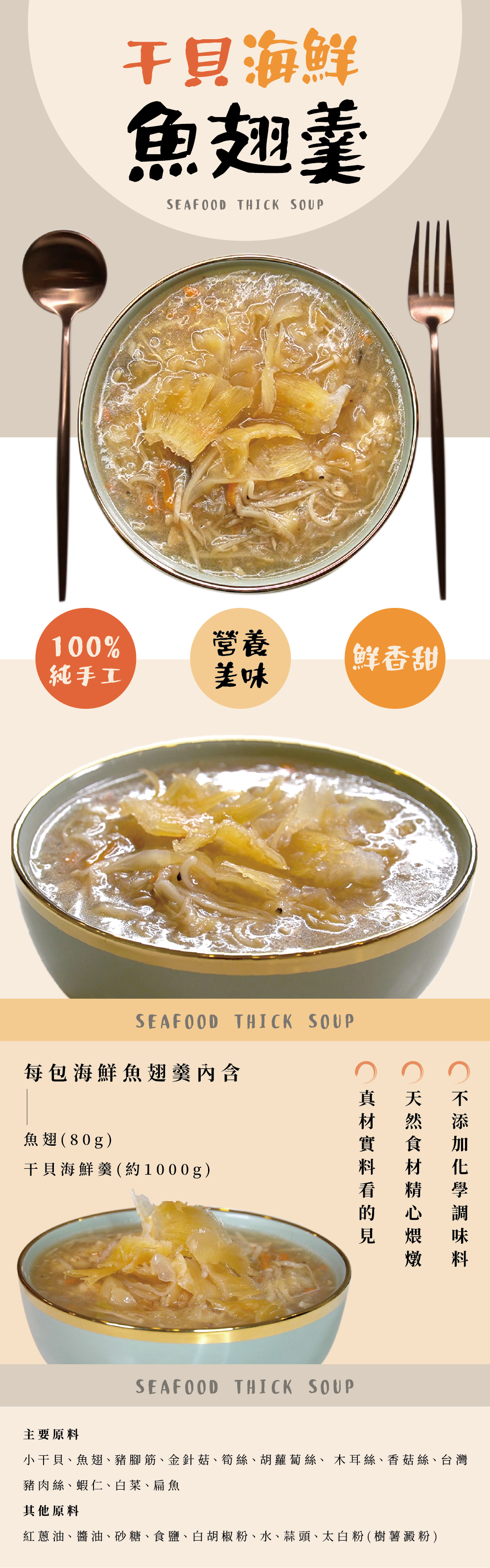 ■每包海鮮魚翅羹內含:魚翅 (80克)+海鮮羹(約1000克)